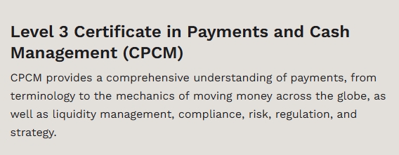 2026年国际支付与现金管理专家(Certificate in Payments & Cash Management,简称CPCM)考试报名工作将于2026年1月1日正式启动,全年接受报名。