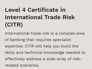 国际贸易风险专家(CITR)考试认证由国际商会(ICC)授权,伦敦银行与金融学院(LIBF)开发,具体考核从业者对于国际贸易相关风险的识别、评估和实际应对能力,是针对贸易、出口、商品及金融等领域从业人员理论和操作水平的国际专业认证。中国大陆及澳门地区考试报名工作由中国贸促会(中国国际商会)培训中心独家负责。